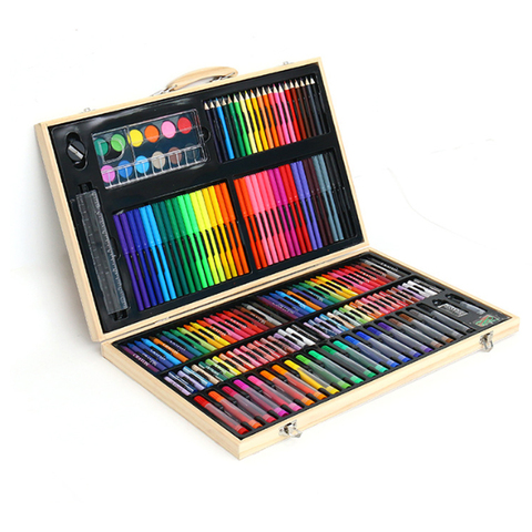 OEM ODM Service Multicolor houten draagkoffer 180-delige kunstset met cartoonverpakking